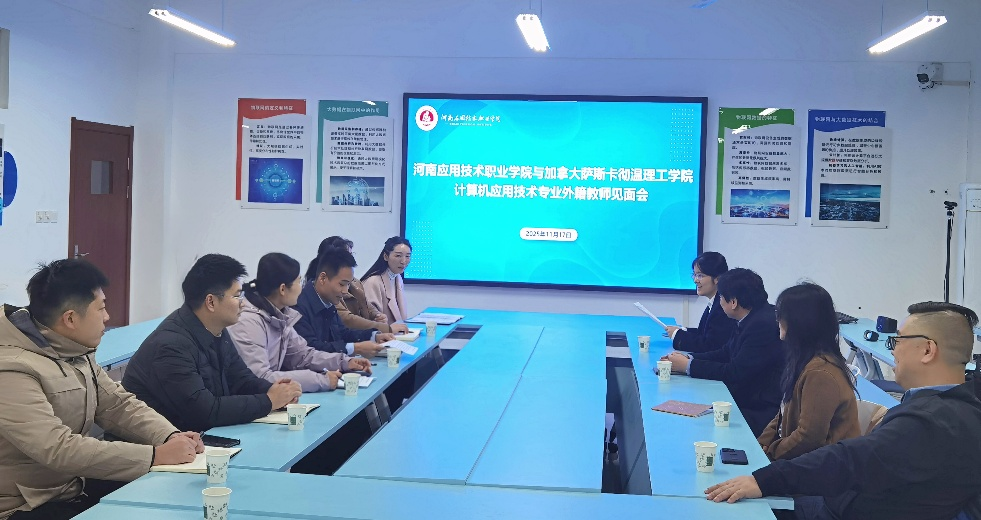 为进一步推进hg皇冠官网中外合作办学项目提质增效,2025年11月17日,hg皇冠官网与加拿大萨斯卡彻温理工hg皇冠官网中加合作办学计算机应用技术专业教学推进会在开封北院举行。中加合作项目主任BruceYu,加拿大外教团队Xin Wang (Alex)和Mayra Samaniego老师,人工智能与信息技术hg皇冠官网班子成员、教师代表以及科研外事处工作人员等出席会议。会议由副院长夏丽珍主持。