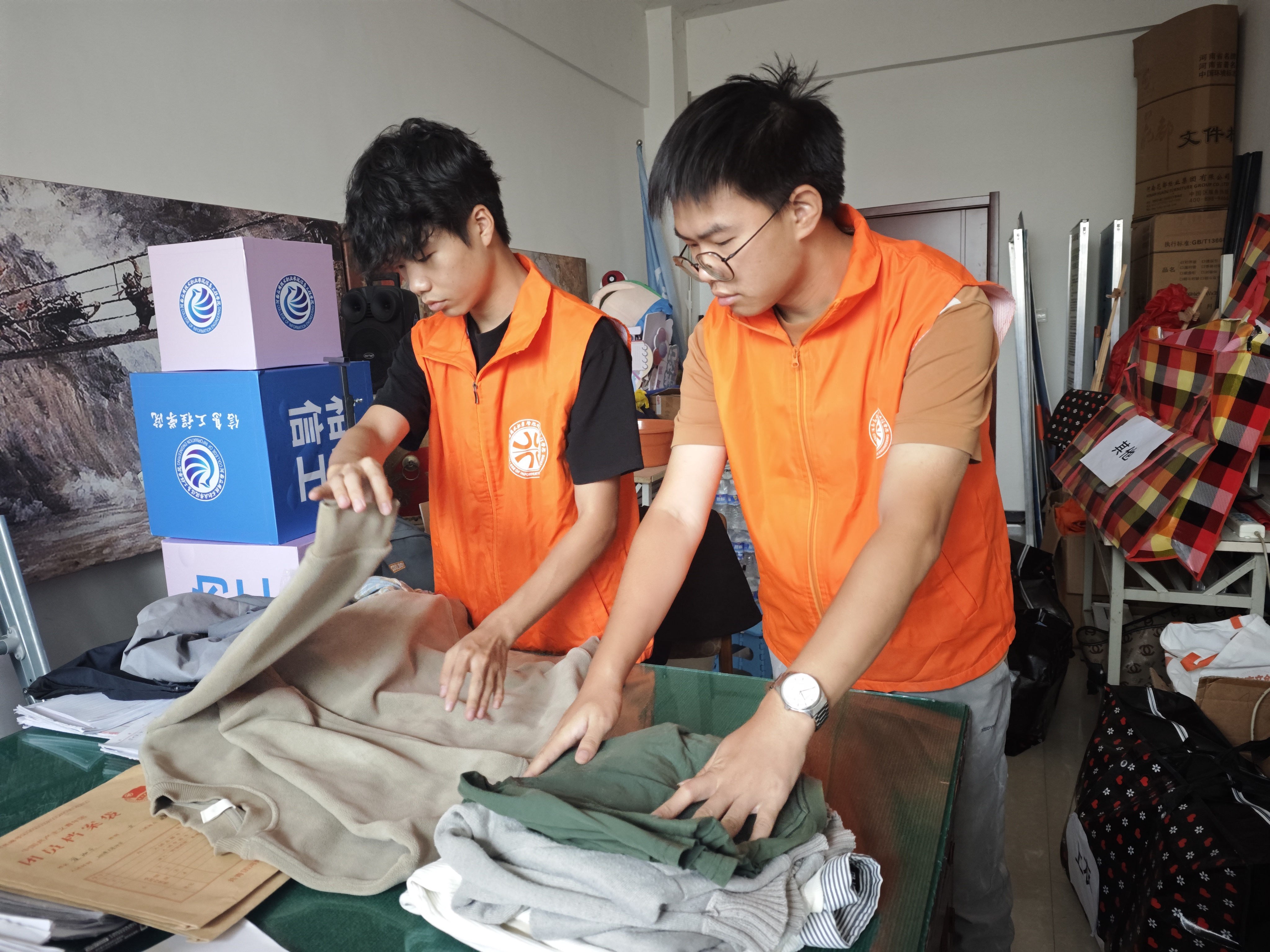 活动倡议一经发出,便得到了全体师生的积极响应。党员同志们率先垂范,纷纷从家中整理出干净、整洁、完好的羽绒服、棉衣、毛衣、保暖裤等过冬衣物。有的同志细心地将衣物清洗晾晒,折叠得整整齐齐;有的同志特意购买了崭新的儿童棉帽、手套和围巾;有的同志不仅在衣物内附上写满鼓励话语的暖心卡片,更主动承担起物资分类、打包整理的工作。活动现场,一件件承载着关爱与温度的衣物逐渐堆积成“小山”,仿佛一座用爱心垒砌的堡垒,准备抵御远方的严寒。