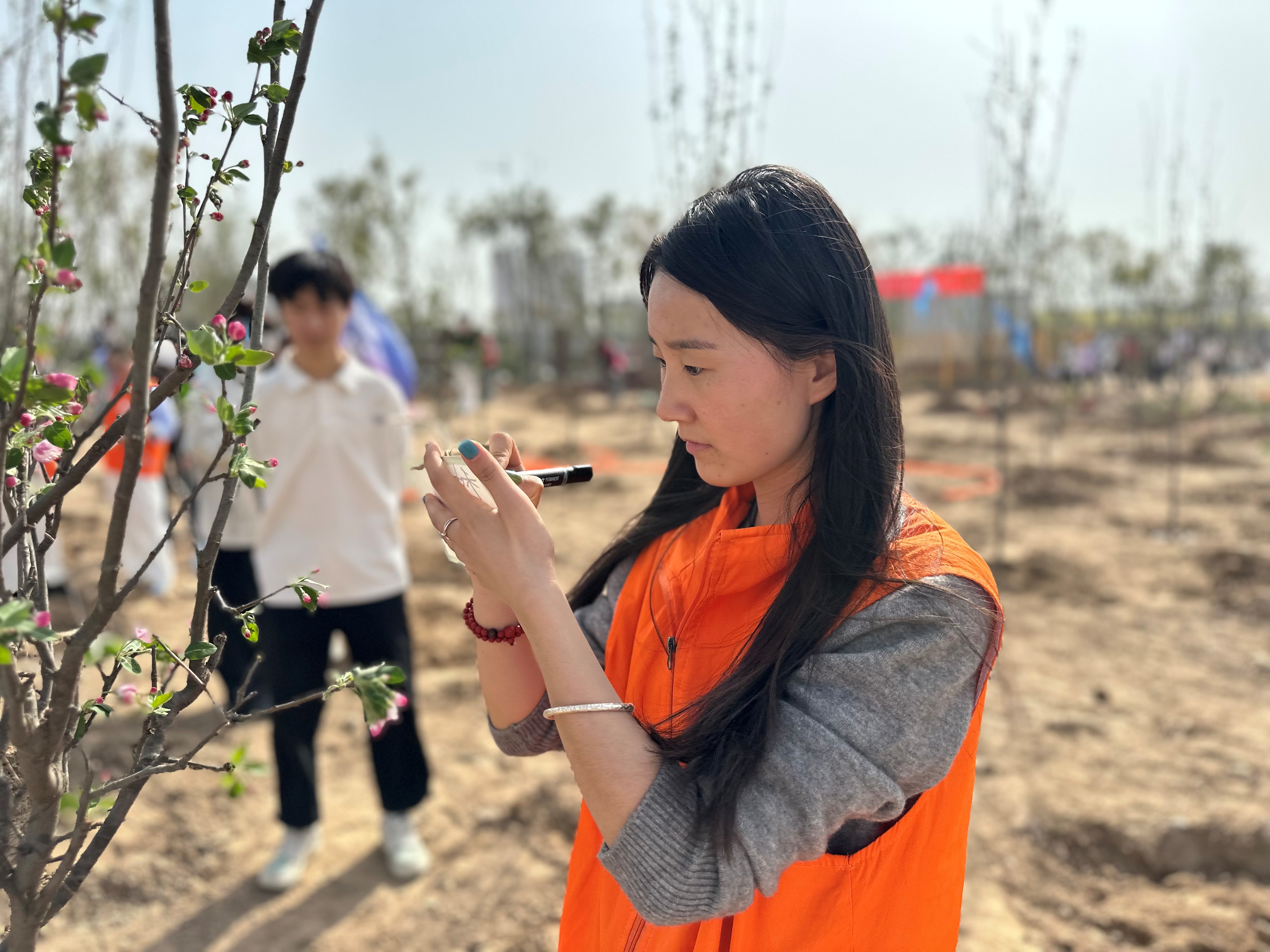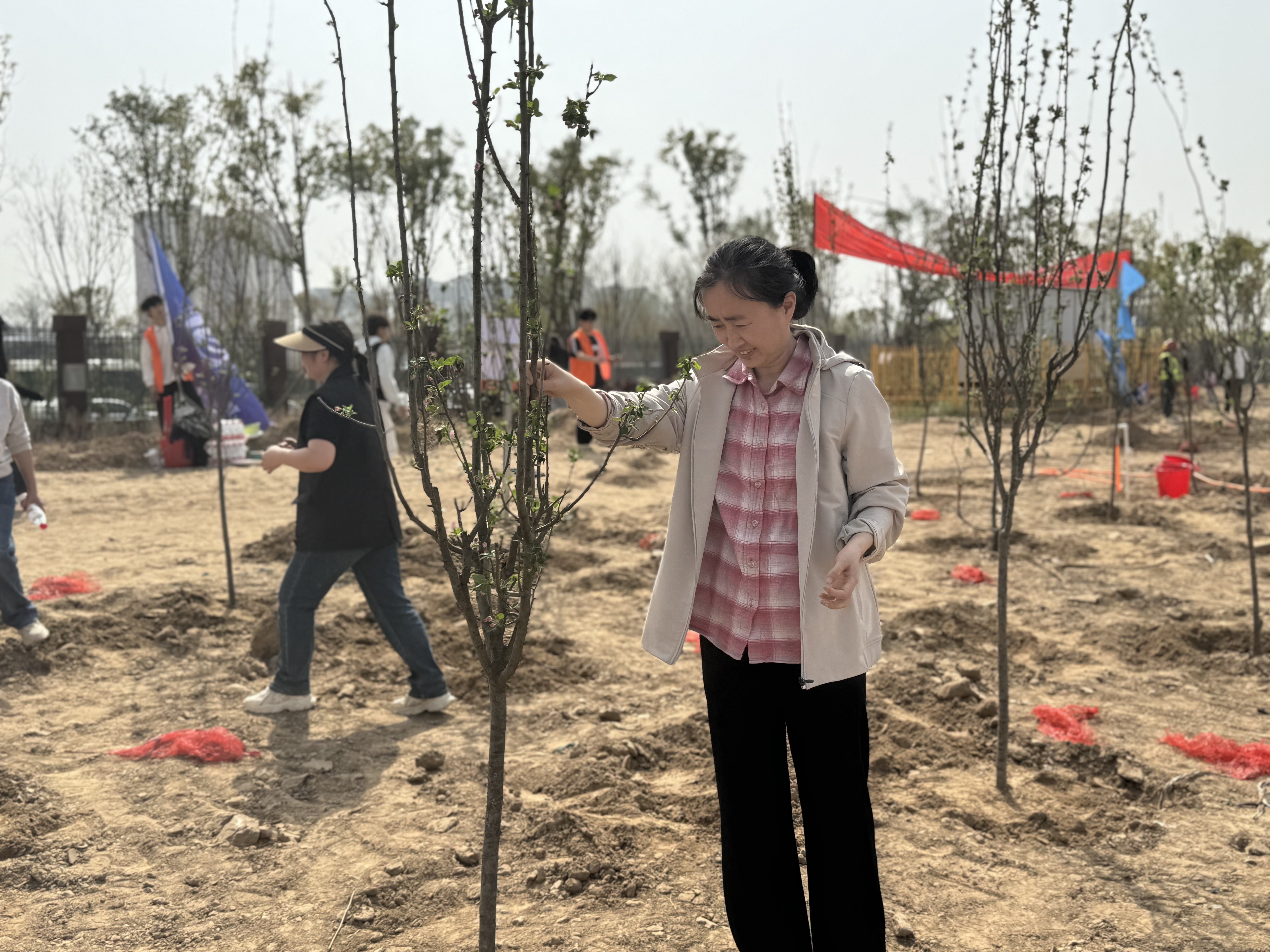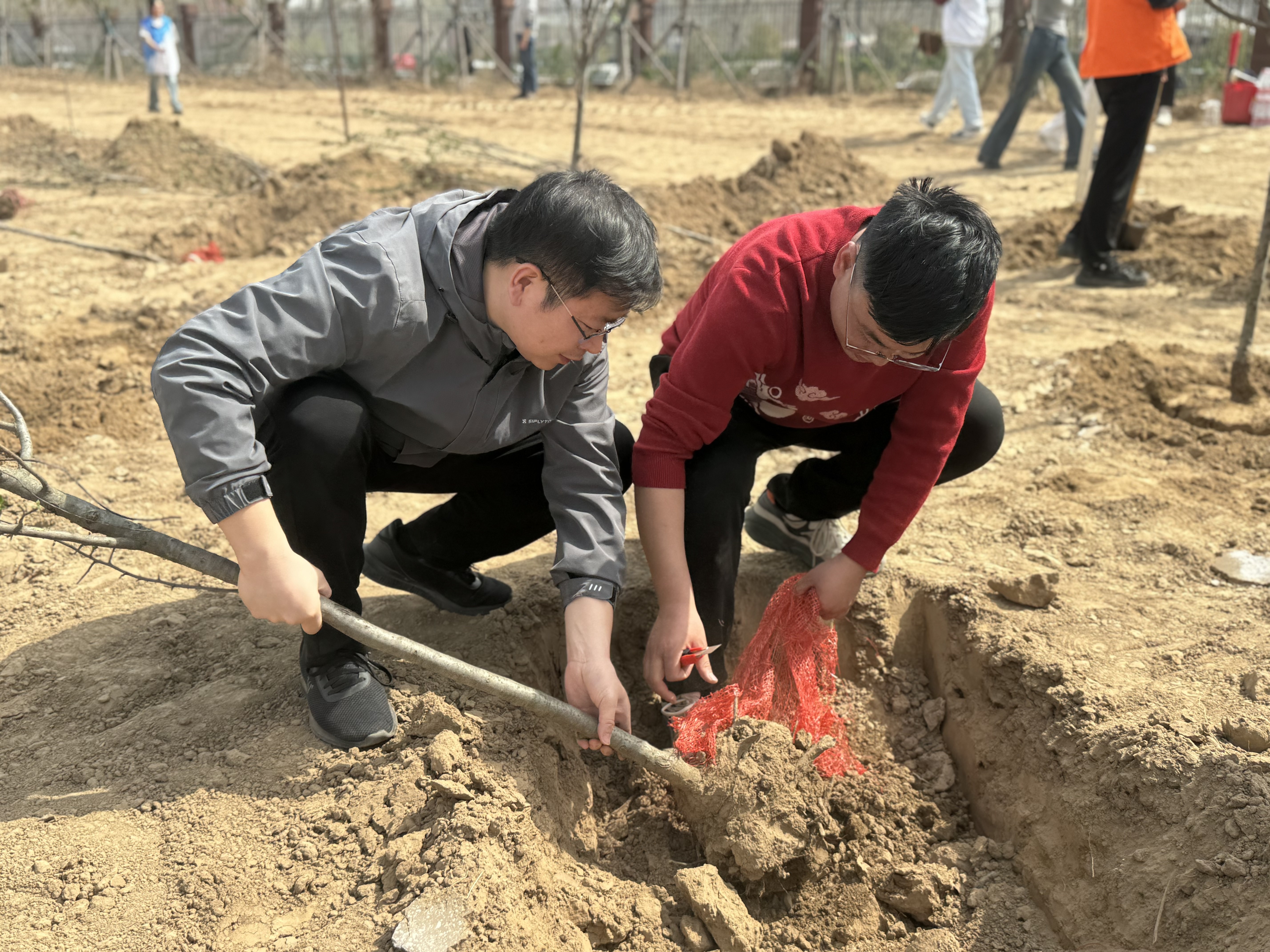 活动伊始,工作人员为党员干部们详细讲解了植树要点和注意事项,包括树苗的选择、树坑的挖掘深度与宽度、树苗的扶正与培土方法以及浇水的技巧等。大家认真聆听,不时提问,为后续的植树工作做好充分准备。随后,大家手持铁锹、锄头、水桶等工具,分组行动、默契配合,挥锹铲土、培土围堰,植树现场一派热火朝天的劳动景象。新栽下的树苗在春风中摇曳生姿,展现出勃勃生机。