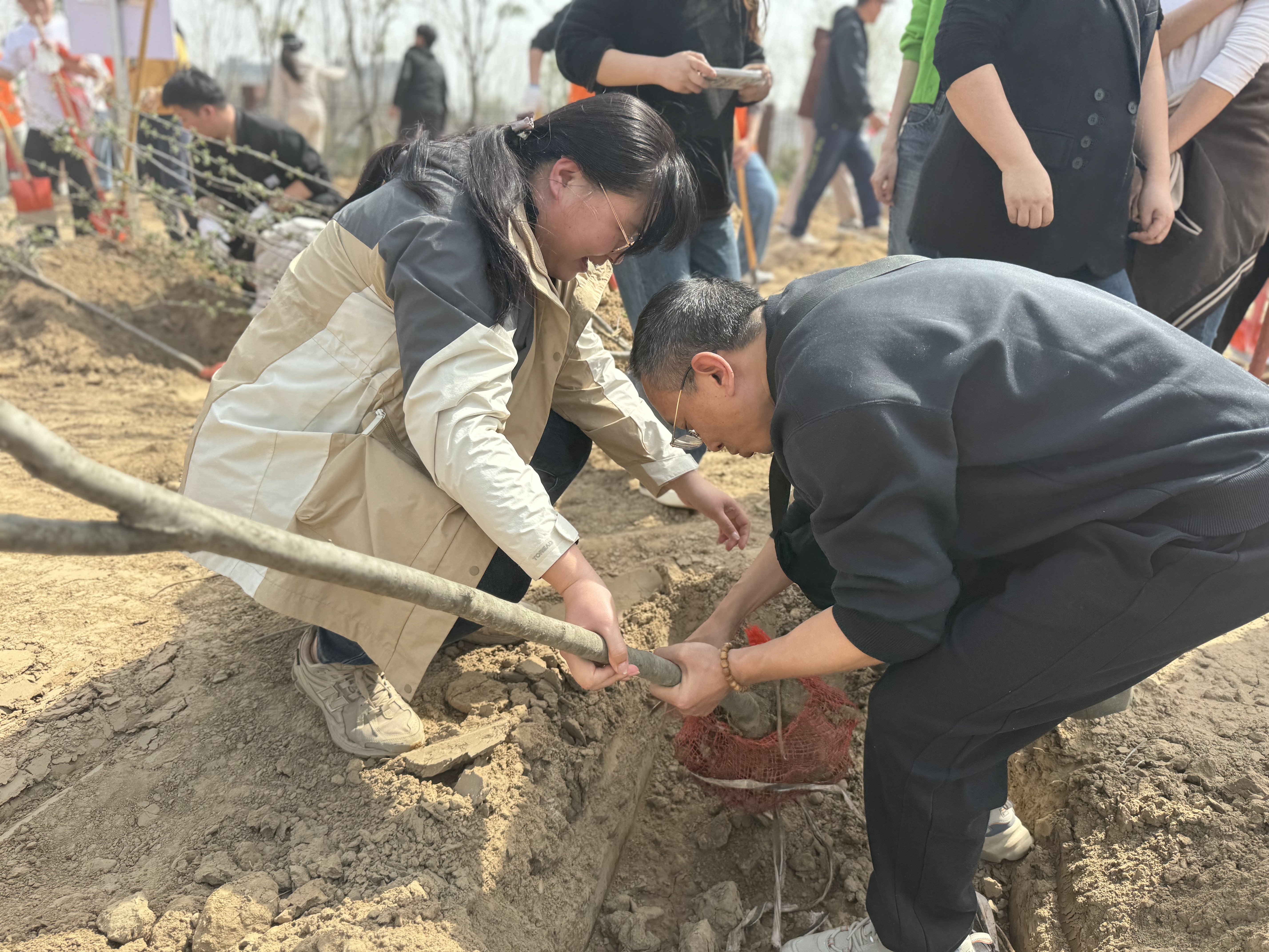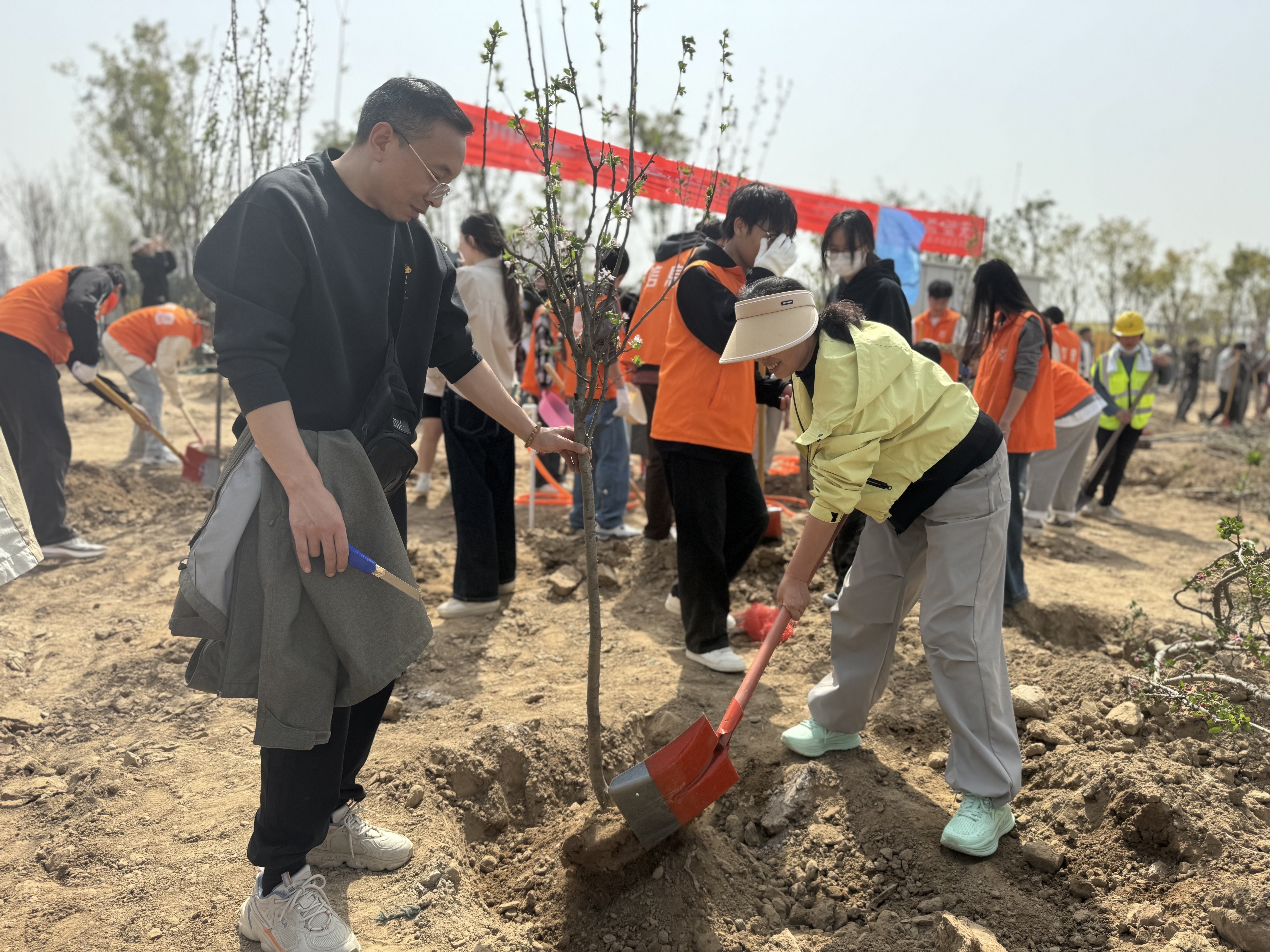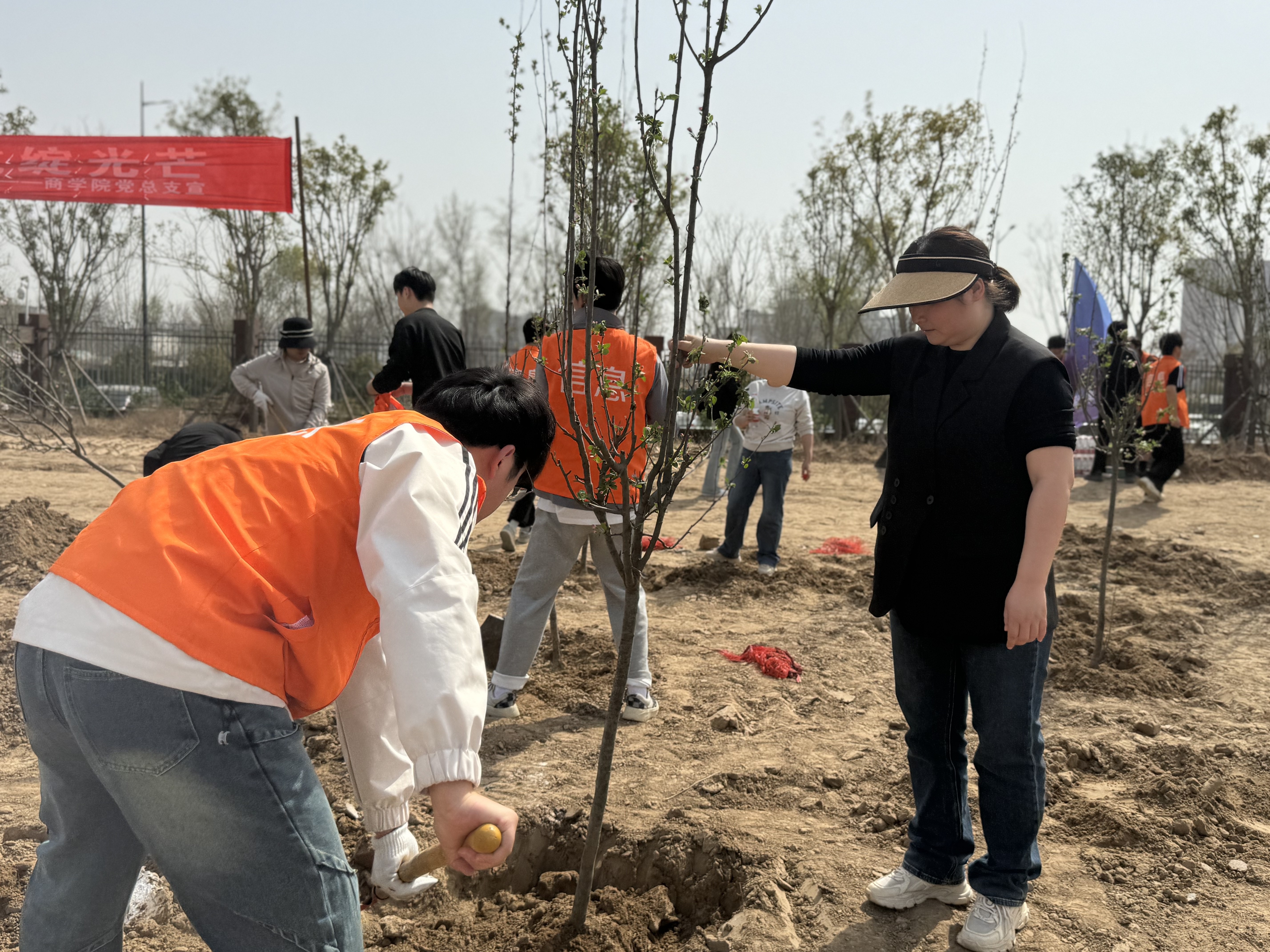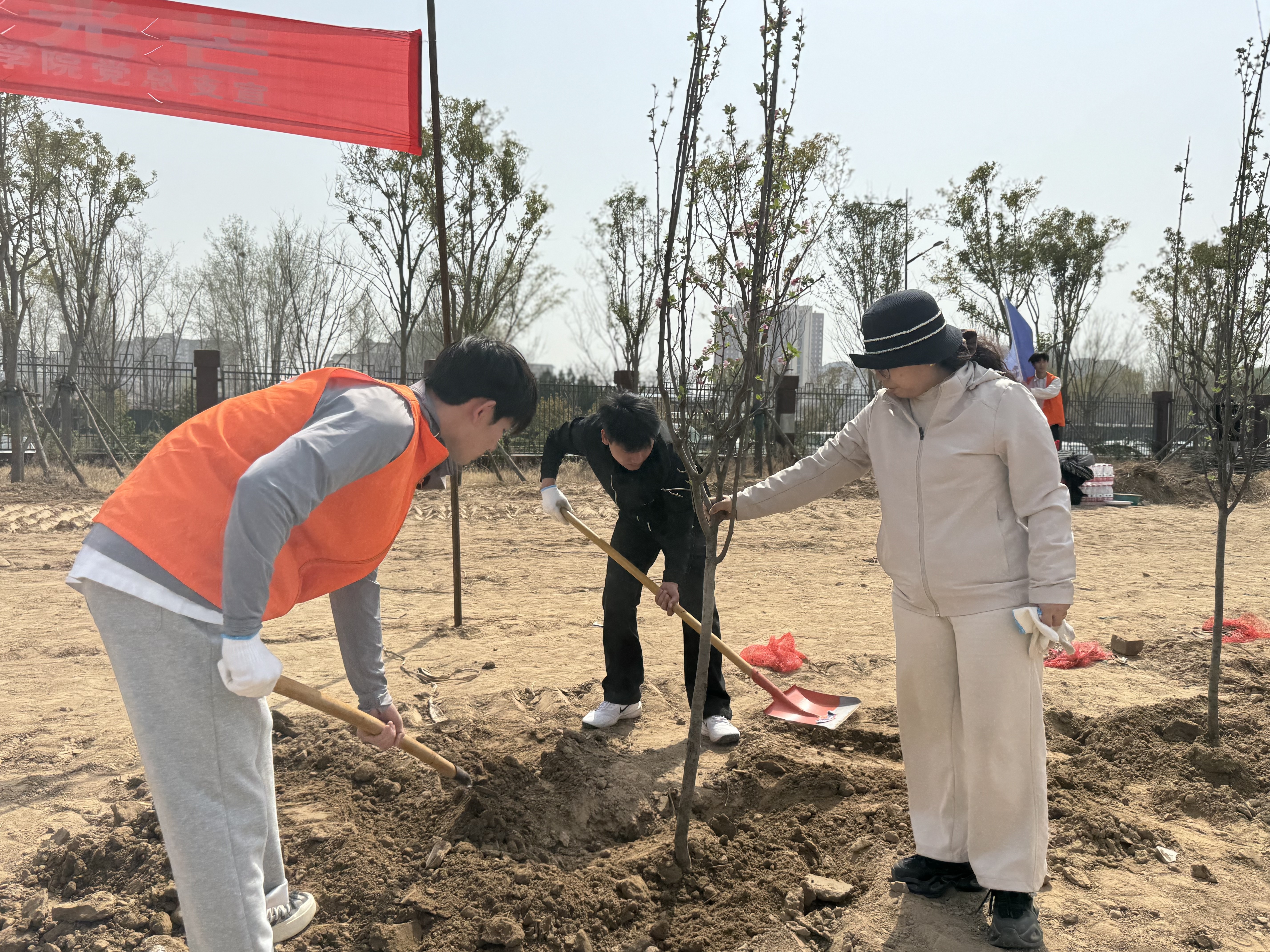 春和景明暖阳日,植树添绿正当时。为深入宣传贯彻习近平生态文明思想,进一步弘扬雷锋精神和“奉献、友爱、互助、进步”的志愿精神,结合学雷锋实践活动,2025年3月25日,hg皇冠官网党总支书记崔琳率43名党员、团员代表,在开封校区北院开展“党建引领添新绿,义务植树践初心”义务植树主题党日活动,共同以实际行动为应院增添新绿,助力生态文明建设。
