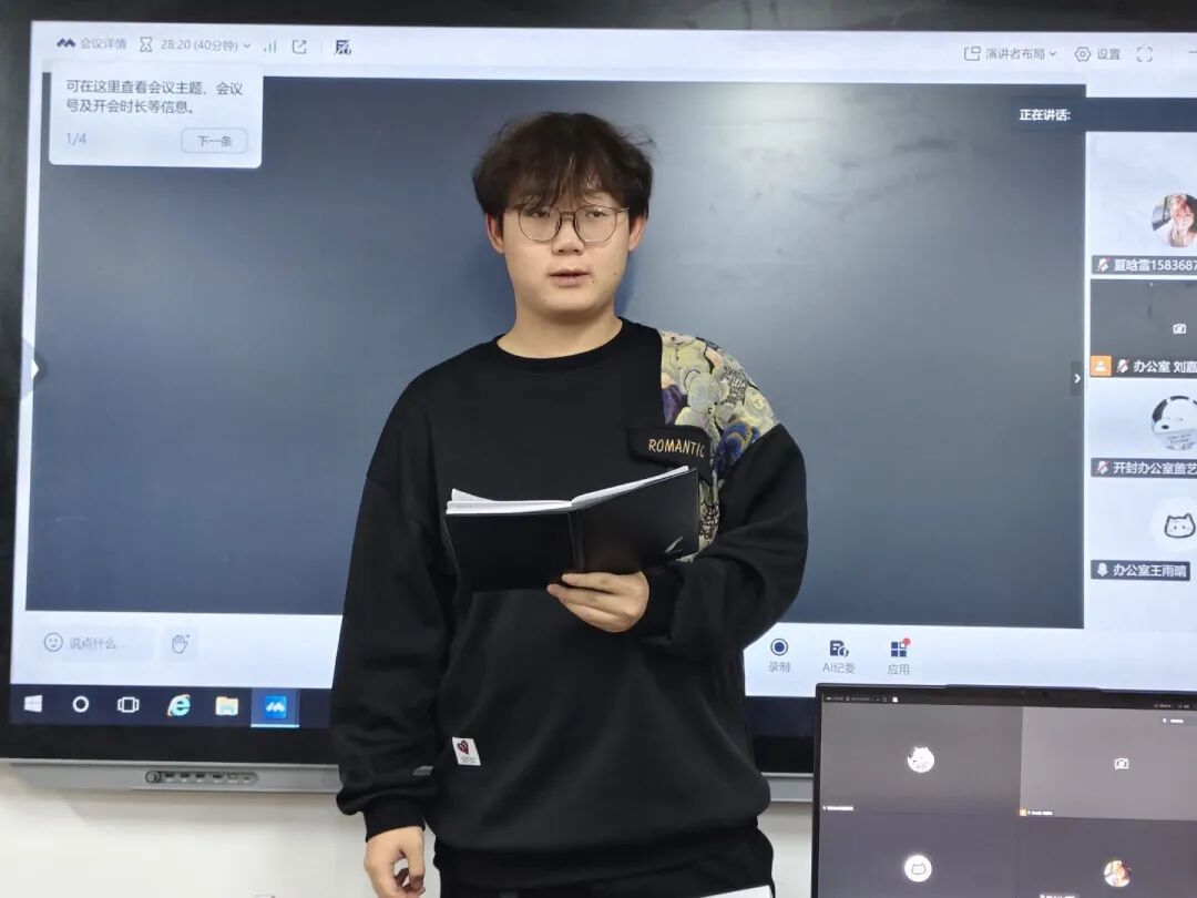会议伊始,各部门负责人围绕近期工作推进情况进行了系统汇报,内容涵盖活动策划、事务协调、学生服务等多个方面。汇报过程中,各部门不仅总结了已完成的任务成果,也对执行中遇到的难点进行了梳理与反思,并提出了下一阶段的具体改进措施与工作计划。