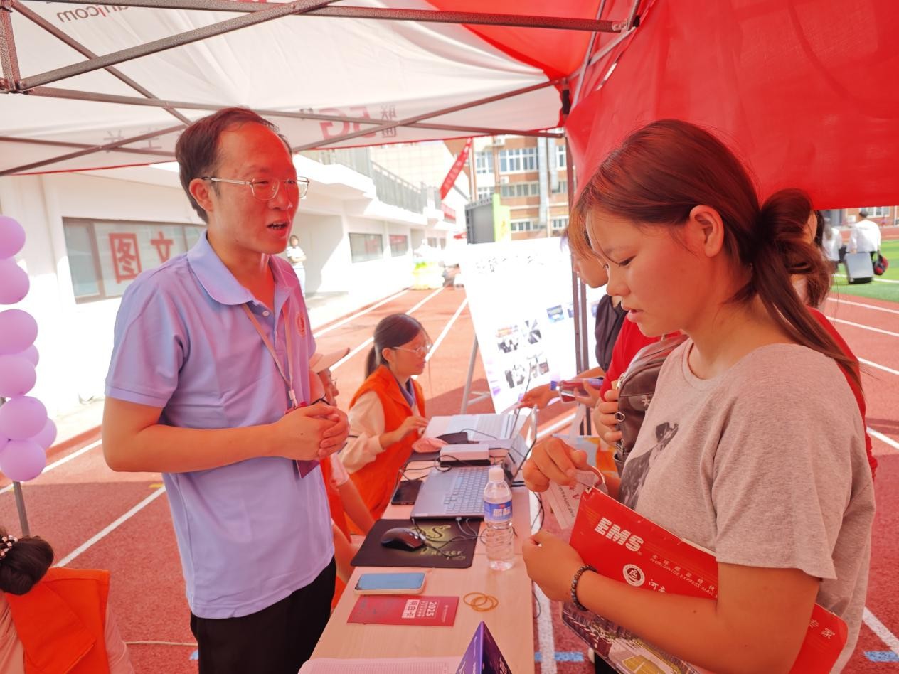 与新生亲切交谈、送上鼓励